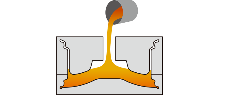 溶かしたアルミ素材を、金型に流し込み成型する方法です。