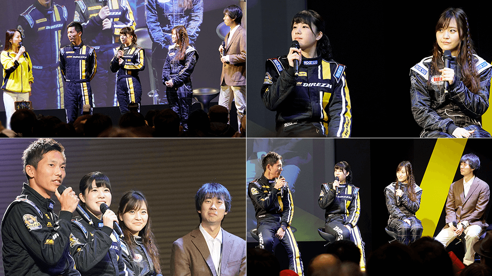 1月14日と15日には、メインステージでモータースポーツにスポットを当てた4コンテンツのトークショーと、「DIREZZA ZⅢ」「LE MANS Ⅴ」という2種類の最新タイヤをテーマにしたトークショーが行われました。