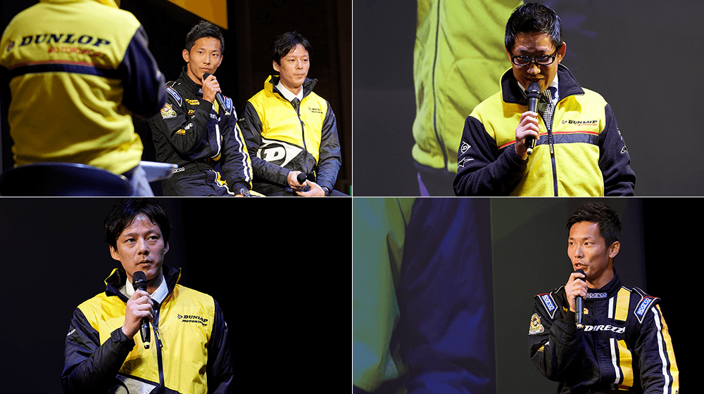 レース中のタイヤマネジメントについて聞かれると、全選手が口をそろえて「タイヤのことを特に気にしなくてもレースに集中できる。それがダンロップタイヤですね」といい、未来に羽ばたくドライバーをサポートするダンロップタイヤの魅力を伝えました。