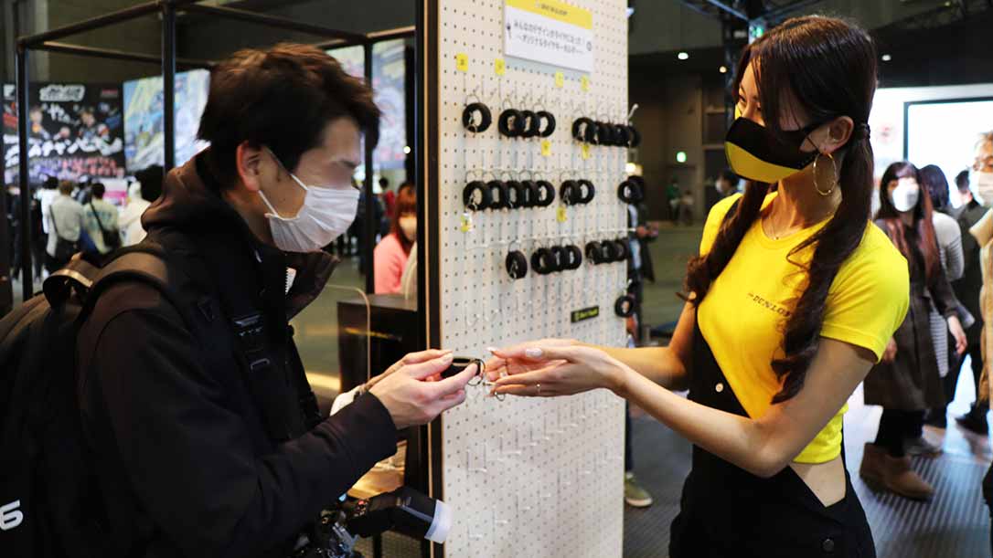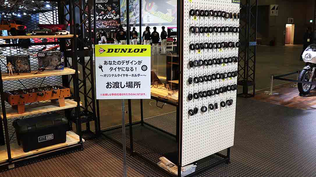チューニングゾーンには、魅力的なスポーツタイヤシリーズを展示。「DIREZZA 03G」「SP SPORT MAXX 060+」「DIREZZA ZⅢ」の3本を展示。走り好きの大人に足を止めてご覧いただけました。