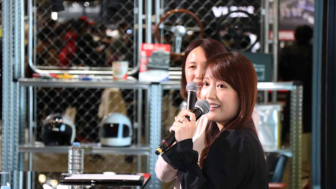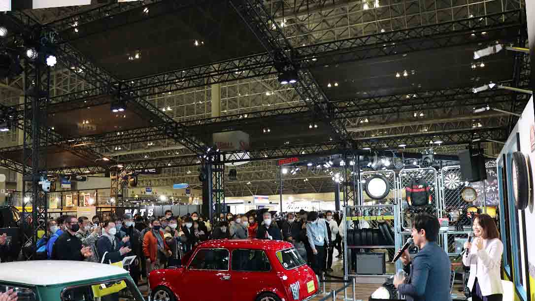 クラシックゾーンのテーマはドライブ・ツーリングが好きな大人の夫婦のガレージ。 SP SPORT R7を装着したローバー・ミニ・クーパーとLE MANS J-CINQを装着したオースチン・ミニ・クーパー、そして、ビンテージ・スポーツタイヤのTT100GPを装着したSR400の2台を展示。夫婦で楽しめる空間を作りました。