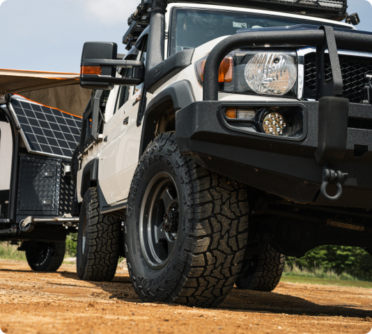 開発者:GRANDTREK全体として“ロングライフ”はひとつの価値です。R/T01でも高耐摩耗性を維持するために新配合のトレッドコンパウンドを採用しました。どんな場面でも安心感をもって長く使っていただけます。