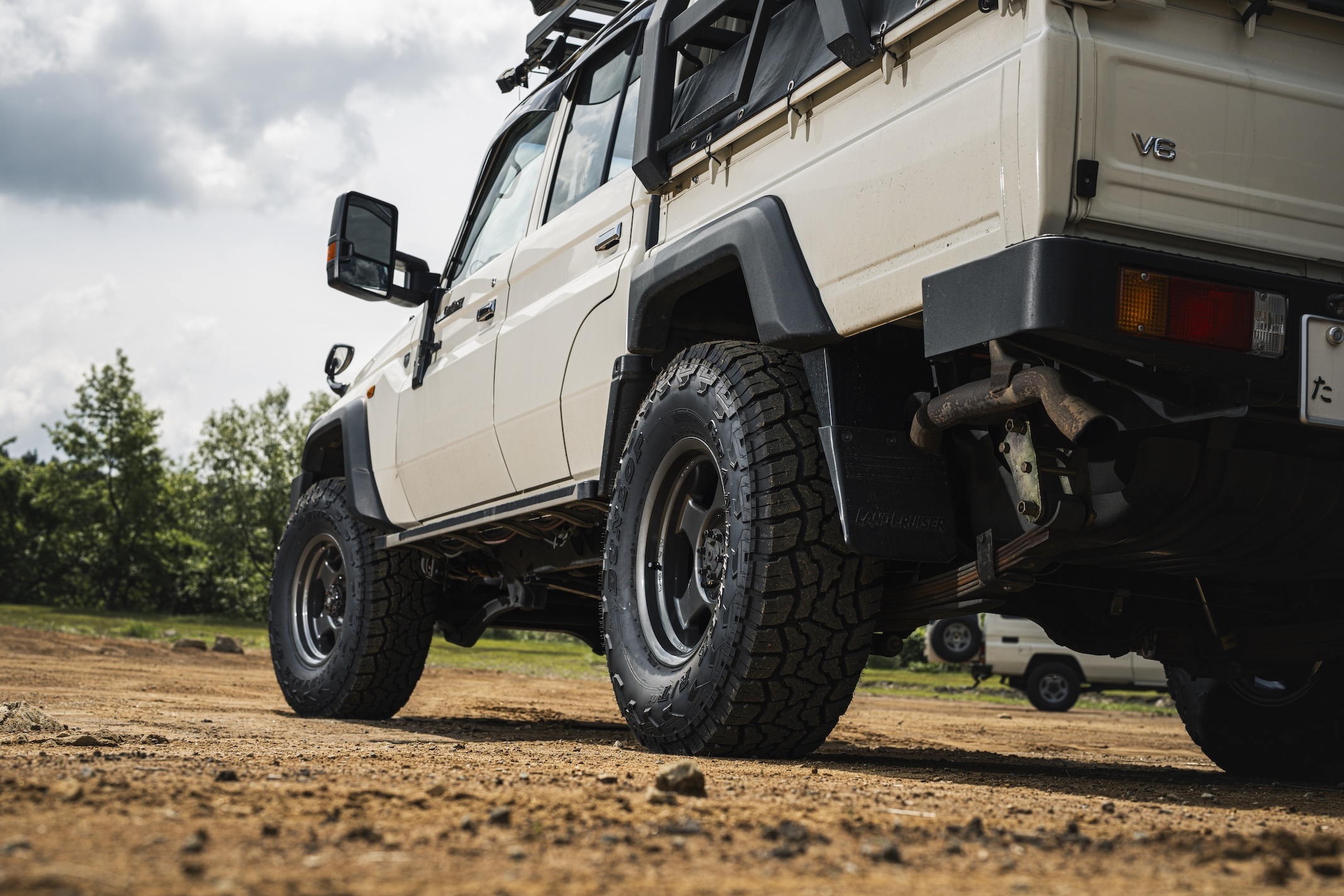R/T01は、舗装路・未舗装路の両方で求められる耐摩耗性を徹底的に追求しました。ブロックの倒れや片べりを防ぐパターン設計、全天候型の高耐久コンパウンド、接地圧の均一化といった技術的工夫に加え、台上評価やシミュレーションを活用し15〜20%のロングライフ化を実現。長く、確実に「走り続けられるタイヤ」への信頼は、確かなデータに支えられています。