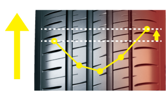 • ※2 試験条件: ●タイヤサイズ: 前輪225/45R18 95Y XL 後輪245/40R18 97Y XL ●空気圧(kPa): 前輪210 後輪220 ●テスト車両排気量: 1,790cc ●ABSの有無: 有駆動 ●試験速度: 100km/h ●路面: アスファルトブレーキ路(水深1.0mm) ●駆動方式: 後輪駆動 ●制動距離: SP SPORT MAXX 060+=53.8m、VEURO VE304=55.5m ●試験方法:「自動車用タイヤの制動試験方法」(JATMA)に則り、完全停止まで試験
