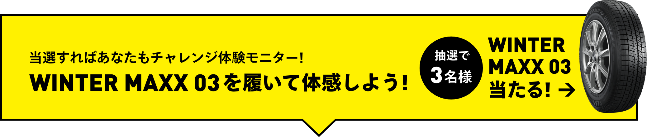 北海道、東北北部、東北南部、北陸、新潟・長野の5エリアから運転して頂きたい場所をご用意しております。その中からWINTER MAXX 03で走行してみたい峠を実際に運転して頂き、取材(顔出し撮影含む)にご対応頂けますモニターの方を3名募集いたします。モニターになって頂いた方にはWINTER MAXX 03をプレゼントいたします。
